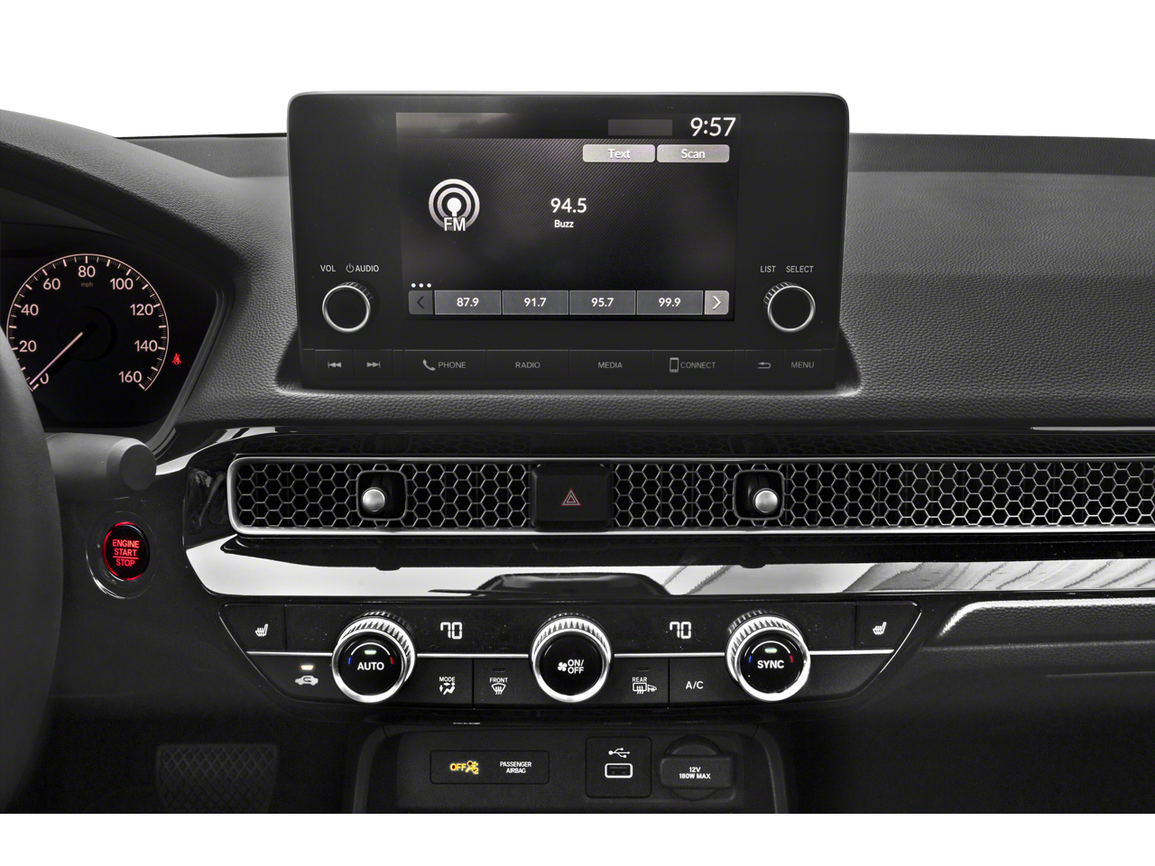 - Radio: 180-Watt AM/FM Audio System -inc: 8 speakers, 7" color touch screen, Bluetooth HandsFreeLink, Bluetooth streaming audio, Radio Data System (RDS), speed-sensitive volume compensation (SVC), SMS text message function, HondaLink, Apple CarPlay integration, Android Auto integration and 2.5-amp USB smartphone/audio interface port in front console